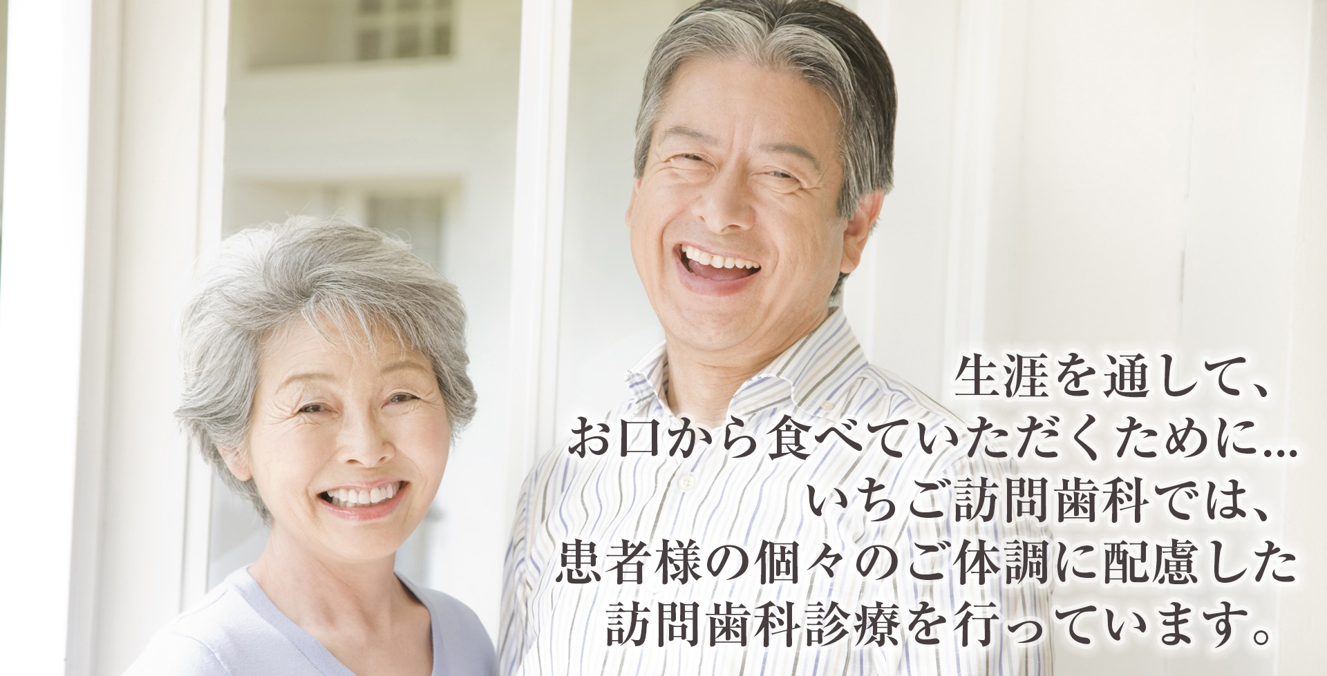 当院では、生涯を通して、お口から食べていただくために、個々のご体調に配慮した訪問⻭科診療を行っています。
